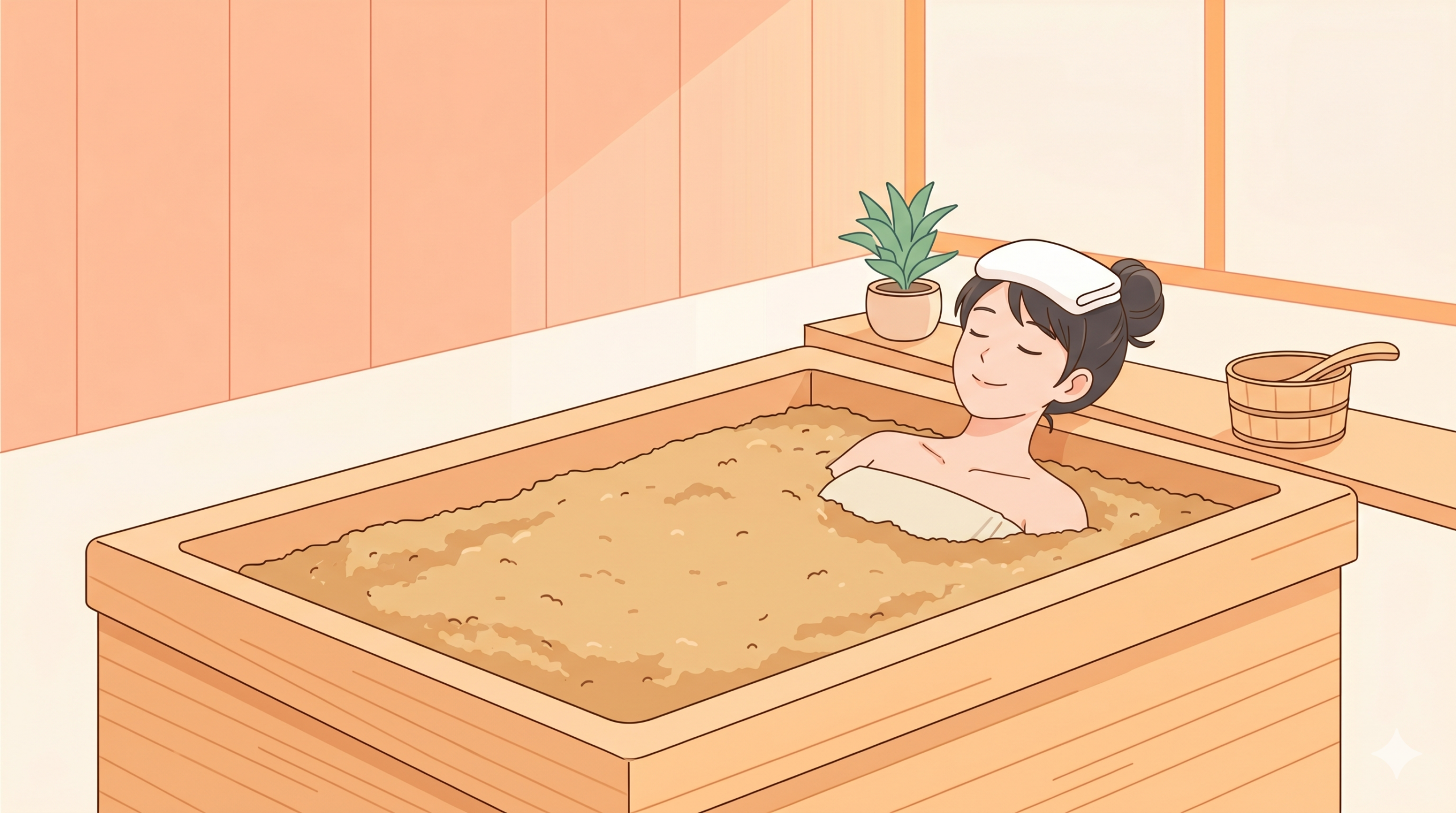 米ぬか酵素風呂は、血行促進や新陳代謝アップで美肌・健康維持をサポートしてくれる自然なケア方法です。