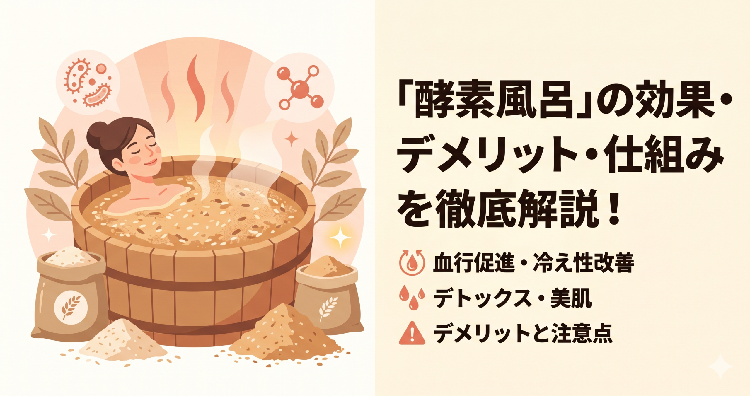 酵素風呂(酵素浴)って体にいいって聞くけど、実際どうなの?」「デメリットはある?」と疑問に思う方も多いのではないでしょうか。