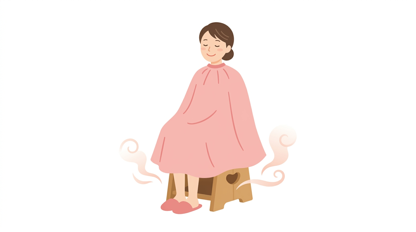 よもぎ蒸しは施術中の座り方を工夫することで、より効果的に蒸気を取り込めるので、体の状態や目的に合わせて座り方を調整してみてください。